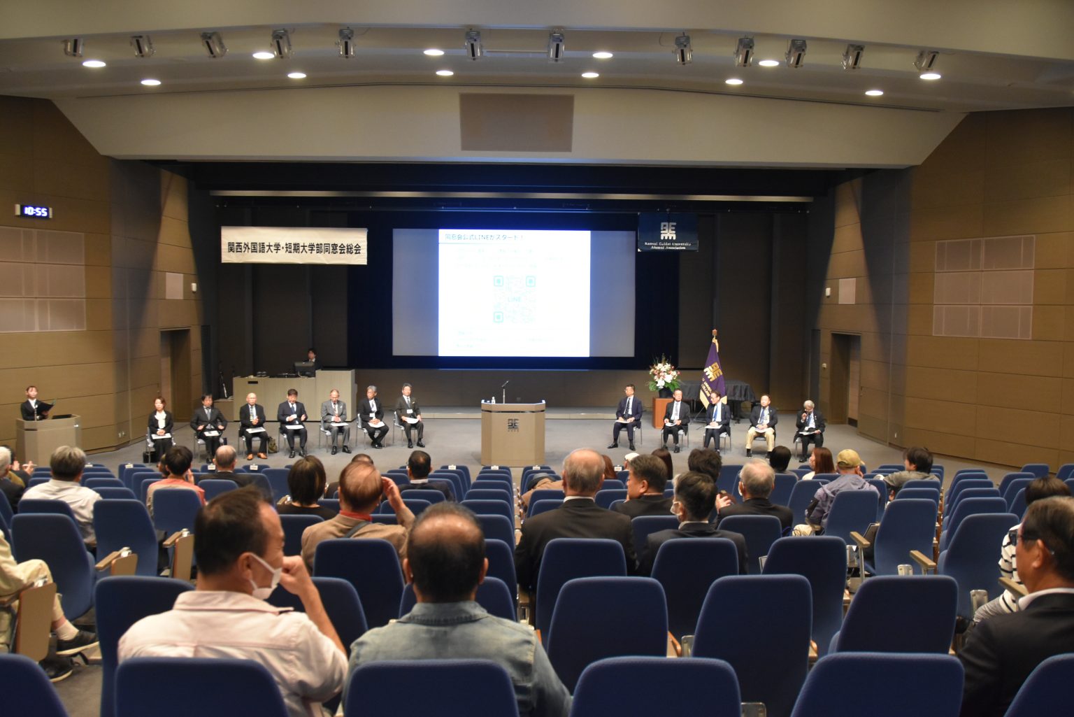 午前11時からマルチメディアホールで同窓会総会が開かれ、来賓としてあいさつに立った菊池清明学長は、「関西外国語大学は11月11日に創立80年を迎えます。ことにこの2、30年ほどで新学部や新しいキャンパスの開設など、本学は目覚ましい発展を遂げ、150年近い歴史を持つ他の大学にも引けを取らないほどに成長しました。大学を取り巻く環境は厳しくとも、本学には『挑戦する文化』がある。これからも同窓生の皆さまと歩みを進めたい」などと話しました。