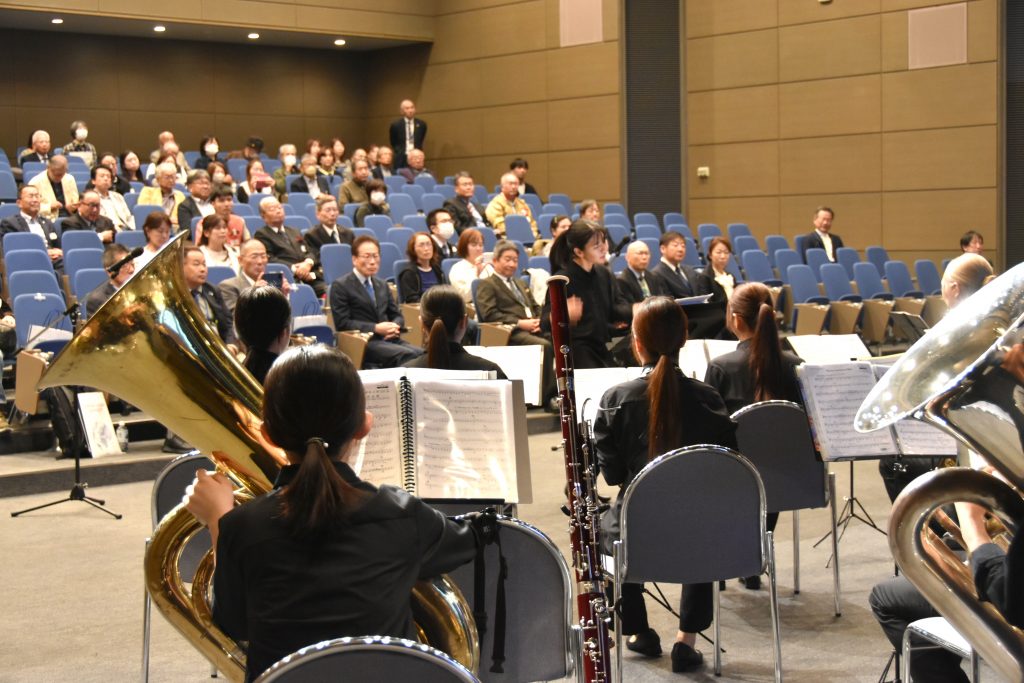 総会の終わりには、「関西外国語大学・短期大学部の“いま”」と題して、最近の関西外大の歩みを、スライドで紹介しました。このあと、吹奏楽部の演奏会があり、40人の部員によるポピュラーソングやアニメ主題歌などの演奏を楽しみました。